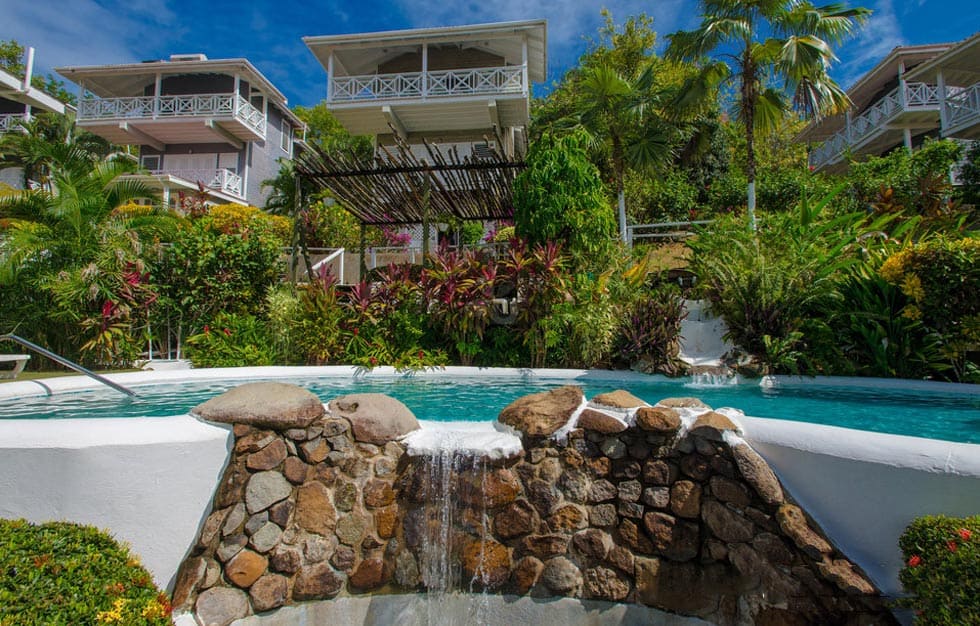 The Vacation Club is a community of 12 private sea house villas nestled amongst the tropical palms and gardens of the northern hillside of Marigot Bay. Each Vacation Club villa has its own beautiful view overlooking the bay and marina.